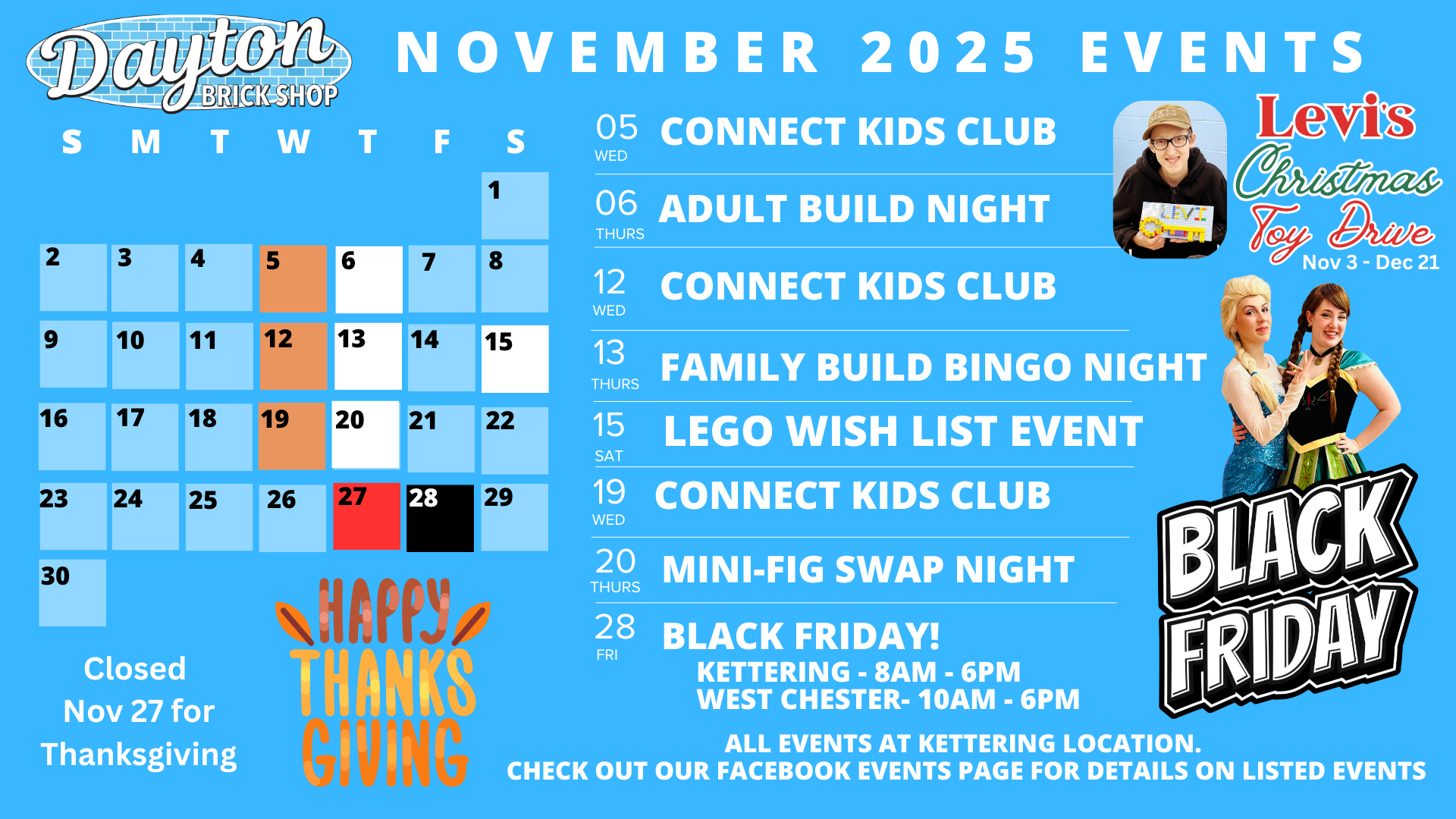 November we have 2 of our most favorite events of the year: LEGO WISH LIST EVENT & BLACK FRIDAY! We are also excited for the start of our 4th annual Levi's Christmas Toy Drive!