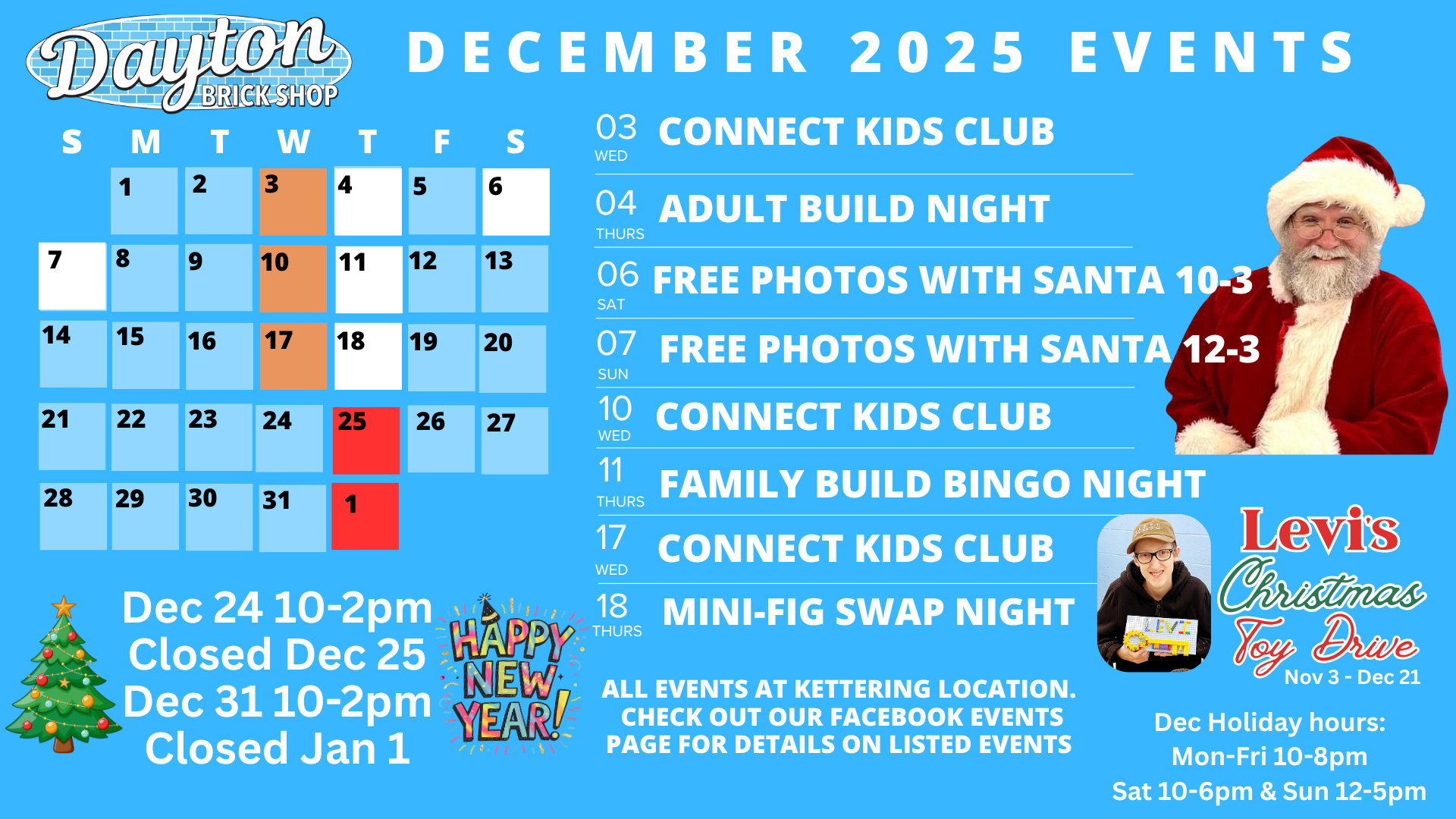 Check out our upcoming events, available Birthday Party bookings, and more happening at Dayton Brick Shop!