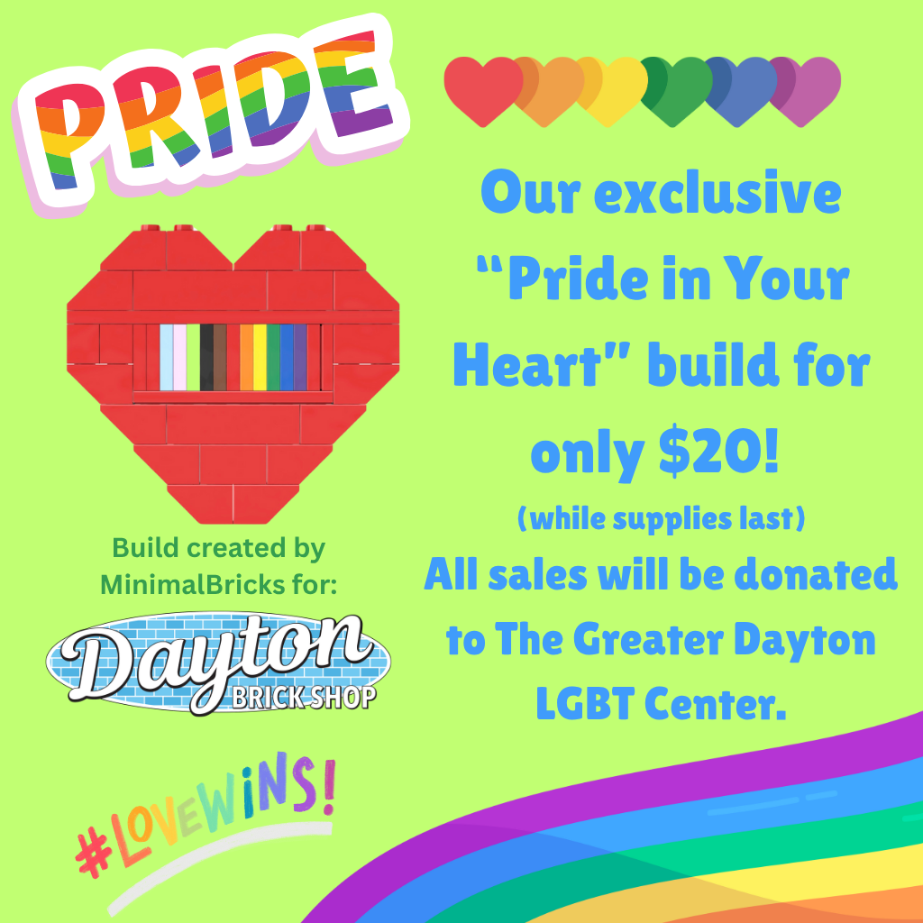 This build was created exclusively for Dayton Brick Shop by MinimalBricks. Each build will be $20 and ALL sales from the builds will be donated to the Greater Dayton LGBT Center.